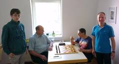 Am Sonntag gab es eine neue Chance. Im anderen Halbfinale hatte sich die SG Solingen mit 2,5:1,5 gegen DJK Aufwärts Aachen durchgesetzt. Da die Solinger bereits für die Deutsche vorberechtigt sind, ging es im Spiel Lemgo - Aachen nicht nur um den 3. Platz beim NRW-Final-Four sondern auch um den zweiten Qualifikationsplatz. Doch wie sollten wir uns dort durchsetzen? Die Aachener traten mit zwei Internationalen und zwei FIDE-Meistern an und waren damit nominell noch deutlich stärker als die Katernberger am Vortag.